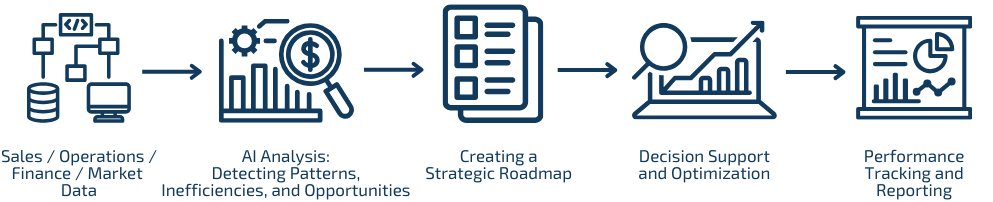 A strategic decision support system that holistically analyzes sales, operations, financial, and market data. It uncovers hidden patterns, inefficiencies, and growth opportunities.