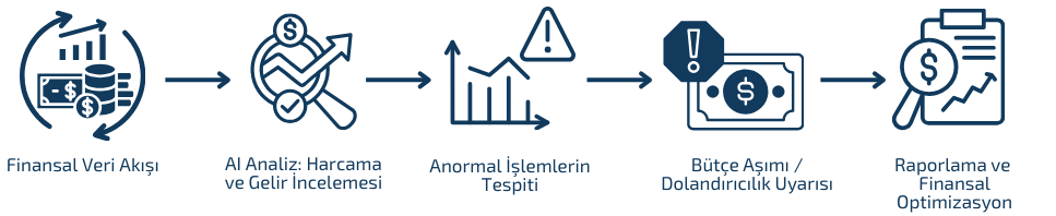 Bütçe aşımlarında, yinelenen ödemelerde veya olası sahtekarlık girişimlerinde finans departmanınızı proaktif olarak uyarır ve gerekli aksiyonların hızla alınmasını sağlar. Ayrıca geçmiş verilerden öğrenerek gelecekte oluşabilecek finansal riskleri öngörür ve mali stratejilerinizi daha sağlam temeller üzerine inşa etmenize yardımcı olur.